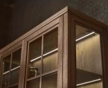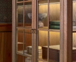 Burned Walnut -sävyinen lämmin värimaailma yhdessä klassisten mittasuhteiden kanssa tekee tästä vitriinikaapista huonekalun, joka sopii yhtä hyvin moderneihin tiloihin kuin perinteisiin koteihin. Katseenvangitsija, joka ikääntyy arvokkaasti.