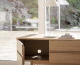 Moresby tv-taso sopii niin perinteiseen kuin moderniinkin tyyliin. Valkopestyn tammen värinen taso on linjakas katseenvangitsija ja tarjoaa säilytystilaa elektroniikalle ja muille tavaroille. Massiivitammesta valmistetut jalat luovat harmonisen ja ilmavan ilmeen. Tv-tasossa on kolme soft-close-mekanismilla varustettua ovea. Sarjaan kuuluu myös senkki.