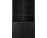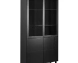 Kuusi massiivipuisista jaloista valmistettua jalkaa antavat kaapille tukevuuden ja nostavat sen irti lattiasta helpottaen puhdistamista. Kaapin sisällä on kaksi lasihyllyä, yksi puuhylly ja kaksi LED-valoa, jotka tekevät sisustuksesta käytännöllisen ja toimivan.