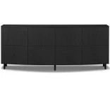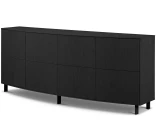 Kaappi seisoo kuuden kapean trapetsimuotoisen massiivipuisen jalan päällä, mikä antaa vakaan perustan ja kevyen ilmeen. Mielenkiintoinen yksityiskohta on illuusio kahdeksasta pienemmästä ovesta, jotka ovat itse asiassa neljä ovea, joista jokaisessa on hieno veistetty linja poikittain. Tämä korostaa käsityötaitoa sekä luonnonmateriaalin käyttöä.
