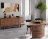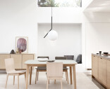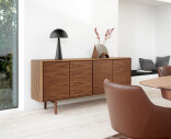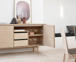 Senkki 544 vie säilytyksen seuraavalle tasolle ovien taittomekanismilla, viilutetulla takaosalla sekä rungon, jalkojen ja ovien viistoreunoilla. Tämä tekee senkistä kauniin joka kulmasta katsottuna ja täydellisen paitsi säilytykseen - myös tyylikkääksi huoneenjakajaksi avoimeen tilaan. Mukana pieni tarjotin ja leikkuulauta, jotka ovat valmistettu tehtaamme ylijäämäpuusta.