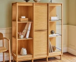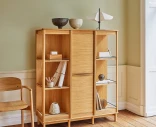 Kaapissa on kaksi kääntyvää osiota, neljä hyllyä, kaksi puulaatikkoa, kaksi rullaluukkua ja yksi ulosvedettävä hylly. Joustavan rakenteensa ansiosta säilytystilaa voi mukauttaa tarpeidesi mukaan.