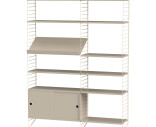 Tässä keskikokoisessa yhdistelmässä on kaikkea. Säilytä rakkaimmat tavarasi ja kirjasi hyllyillä, lehdet kallellaan olevalla hyllyllä ja piilota muut tavarat kaappiin.