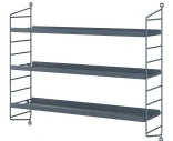 Metallihyllyissä om matala 2 cm reuna, ja rei’itetyt pohjat mahdollistavat String System -lisävarusteiden, kuten tangon tai koukkujen, lisäämisen. Mahdollisuudet ja käyttötarkoitukset ovat lukemattomat!