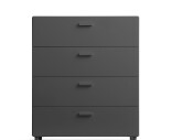 Leveä Relief-laatikosto neljällä vetolaatikolla, jaloilla.