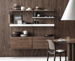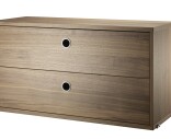 Laatikosto sopii String System -sarjan paneeleihin, joiden syvyys on 30 cm. Laatikostossa on kaksi vetolaatikkoa jotka tuovat käytännöllistä säilytystilaa eteiseen, olohuoneeseen tai työhuoneeseen.