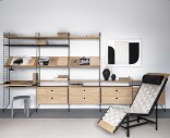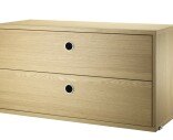 Laatikosto sopii String System -sarjan paneeleihin, joiden syvyys on 30 cm. Laatikostossa on kaksi vetolaatikkoa jotka tuovat käytännöllistä säilytystilaa eteiseen, olohuoneeseen tai työhuoneeseen.