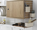 String Organizers säilytyslokerot sopivat String-hyllyjärjestelmän sivupaneeleihin ja tarjoavat säilytystilaa kaikenlaisille pikkutavaroille.