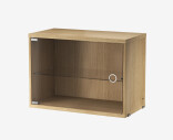 Vitriinikaappi sopii String System-sarjan paneeleihin, joiden syvyys on 30 cm. Kaapin sisällä on siirrettävä lasinen hyllylevy.