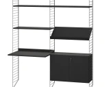 Kaikki osat kuuluvat String Furnituren modulaariseen järjestelmään ja niitä voi säätää, täydentää tai rakentaa uudelleen tarpeiden mukaan.