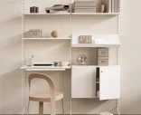 Kaikki osat kuuluvat String Furnituren modulaariseen järjestelmään ja niitä voi säätää, täydentää tai rakentaa uudelleen tarpeiden mukaan.