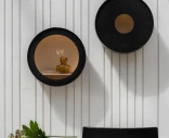 Aski-seinäkaappi, valmistettu koivuvanerista, on tyylikäs, pyöreä kaappi, jossa on kätevä avausmekanismi ja kiinteä hylly sisällä. Kaappi tarjoaa säilytystilaa pienille esineille ja toimii samalla koristeellisena yksityiskohtana kodissa.