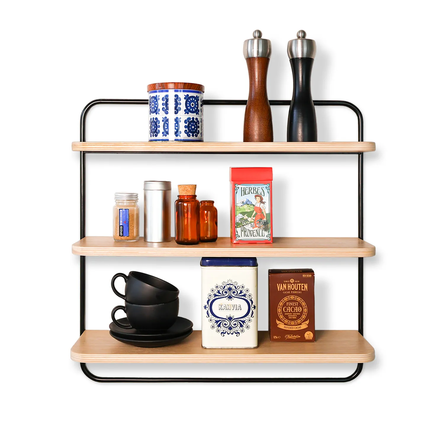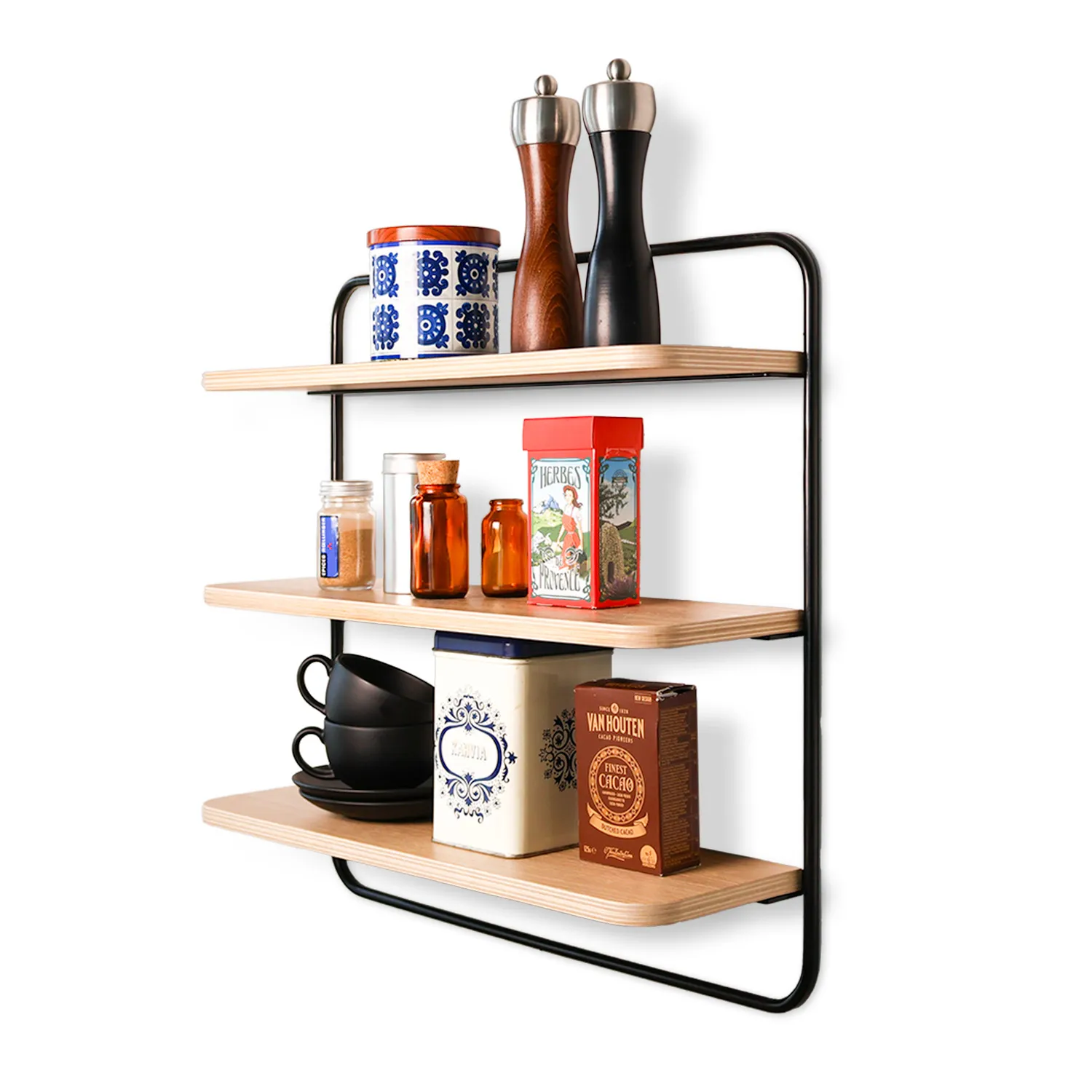 Sopiva on pieni seinähylly, valmistettu vahatusta tammiviilusta ja lakatusta metallista. Se on suunniteltu tuomaan säilytystilaa juuri sinne, missä sitä eniten tarvitaan. Piilotettu kiinnitys ja kompakti koko tekevät siitä helpon sijoittaa niin eteiseen, keittiöön kuin kylpyhuoneeseenkin.