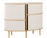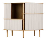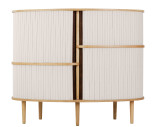 Audacious highboard -kaappi sopii täydellisesti olohuoneeseen, ruokailutilaan, tai minne tahansa tarvitset säilytystilaa. Ilmaisu on skandinaavinen mutta rohkea, ja kankaiset liukuovet luovat nostalgisen mutta modernin viittauksen sisustukseen.