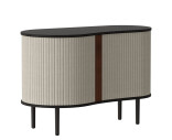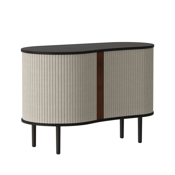 Audacious on persoonallinen kaappi joka piilottaa tai korostaa. Kiertävä liukuovi määrittää miten paljon haluat näyttää suosikkiesineitäsi. Kauniisti aaltoilevan kaapin sisällä on pohjan lisäksi yksi hyllytaso. Kankainen liukuovi on vaihdettava: jos haluat uutta väriä voit vaihtaa pelkän rulo-oven.