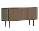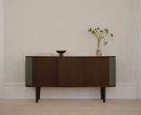 Tammisen Treasures-senkin pyöristetyissä päädyissä avautuvat kankaalla, rottingilla tai keinonahalla päällystetyt siipimäiset ovet, jotka tuovat lisätilaa esimerkiksi kirjoille tai lempiviskipulloille. Kaapin keskellä on kolme ovea, jotka kätkevät taakseen runsaasti säilytystilaa.
