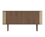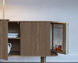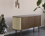 Tammisen Treasures-senkin pyöristetyissä päädyissä avautuvat rottingilla, kankaalla tai keinonahalla päällystetyt siipimäiset ovet, jotka tuovat lisätilaa esimerkiksi kirjoille tai lempiviskipulloille. Kaapin keskellä on kolme ovea, jotka kätkevät taakseen runsaasti säilytystilaa.