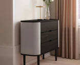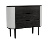Treasure-laatikosto UMAGElta on tyylikäs säilytysratkaisu, jossa on pyöristetyt reunat ja huolella suunnitellut yksityiskohdat. Kolme tilavaa laatikkoa tarjoavat runsaasti tilaa vaatteille tai muille tärkeille tavaroille, ja sivuovien takana on lisää säilytystilaa. Sopii täydellisesti niin makuuhuoneeseen, olohuoneeseen kuin työhuoneeseenkin.
