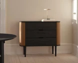 Treasure-laatikosto UMAGElta on tyylikäs säilytysratkaisu, jossa on pyöristetyt reunat ja huolella suunnitellut yksityiskohdat. Kolme tilavaa laatikkoa tarjoavat runsaasti tilaa vaatteille tai muille tärkeille tavaroille, ja sivuovien takana on lisää säilytystilaa. Sopii täydellisesti niin makuuhuoneeseen, olohuoneeseen kuin työhuoneeseenkin.