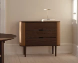 Treasure-laatikosto UMAGElta on tyylikäs säilytysratkaisu, jossa on pyöristetyt reunat ja huolella suunnitellut yksityiskohdat. Kolme tilavaa laatikkoa tarjoavat runsaasti tilaa vaatteille tai muille tärkeille tavaroille, ja sivuovien takana on lisää säilytystilaa. Sopii täydellisesti niin makuuhuoneeseen, olohuoneeseen kuin työhuoneeseenkin.