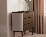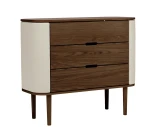 Treasure-laatikosto UMAGElta on tyylikäs säilytysratkaisu, jossa on pyöristetyt reunat ja huolella suunnitellut yksityiskohdat. Kolme tilavaa laatikkoa tarjoavat runsaasti tilaa vaatteille tai muille tärkeille tavaroille, ja sivuovien takana on lisää säilytystilaa. Sopii täydellisesti niin makuuhuoneeseen, olohuoneeseen kuin työhuoneeseenkin.