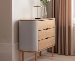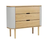 Treasure-laatikosto UMAGElta on tyylikäs säilytysratkaisu, jossa on pyöristetyt reunat ja huolella suunnitellut yksityiskohdat. Kolme tilavaa laatikkoa tarjoavat runsaasti tilaa vaatteille tai muille tärkeille tavaroille, ja sivuovien takana on lisää säilytystilaa. Sopii täydellisesti niin makuuhuoneeseen, olohuoneeseen kuin työhuoneeseenkin.