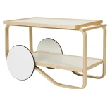 Artek Tea Trolley 901 on elegantti tarjoiluvaunu ja ajaton klassikko vuodelta 1936. Sen kaareva koivurunko, suuret pyörät ja kaksi käytännöllistä hyllytasoa tekevät siitä sekä toiminnallisen että tyylikkään sisustuselementin. Täydellinen liikkuvana laskutasona tai tyylikkäänä yksityiskohtana olohuoneessa. Valmistettu Suomessa korkealaatuisista materiaaleista.