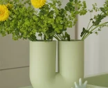 Muuton Kink-vaasi yhdistää modernin teknologian perinteiseen keraamiseen käsityöhön. Tämä ainutlaatuinen vaasi, jossa on kaksinkertaiset aukot ja veistoksellinen muotoilu, tekee siitä huomiotaherättävän yksityiskohdan huoneessa, vaikka se olisikin ilman kukkia. Pinnan ja värin pienet vaihtelut ovat luonnollisia ja tekevät jokaisesta kappaleesta ainutlaatuisen.