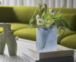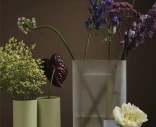 Ridge-maljakko Muutolta on tyylikäs esine, jossa on veistoksellinen muoto ja mattapintainen suupuhallettu lasi. Maljakossa on hienovarainen syvennys, joka tukee kukkia ja toimii käytännöllisenä tartuntapintana. Pystysuorat linjat ja ainutlaatuinen muoto tekevät siitä koristeellisen elementin, oli se sitten käytössä kukka-asetelmille tai yksittäisenä sisustusesineenä.