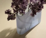 “The idea for the Ridge Vase came while traveling through different cities with a vase in mind, searching for details that had an architectural feel. Upon returning to our studio in Finland, we began sketching by hand and making mock-ups in paper and ceramics. With its vertical lines and unique shape, inspired by a doorway in Paris, the Ridge Vase presents a new way to place flowers through a modern expression along with a sculptural character when not in use. The Ridge Vase manipulates the oval form through its refined dent while adding the function of a small handle to use when moving the vase from one room to another.”