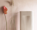 “With its vertical lines and unique shape, inspired by a doorway in Paris, the Ridge Vase presents a new way to place flowers through a modern expression along with a sculptural character when not in use. The Ridge Vase manipulates the oval form through its refined dent while adding the function of a small handle to use when moving the vase from one room to another.”