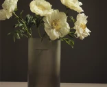 Ridge-maljakko Muutolta on tyylikäs esine, jossa on veistoksellinen muoto ja mattapintainen suupuhallettu lasi. Maljakossa on hienovarainen syvennys, joka tukee kukkia ja toimii käytännöllisenä tartuntapintana. Pystysuorat linjat ja ainutlaatuinen muoto tekevät siitä koristeellisen elementin, oli se sitten käytössä kukka-asetelmille tai yksittäisenä sisustusesineenä.
