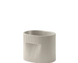 Muuto Ridge Planter on elegantti istutusruukku, jonka veistoksellinen muoto on saanut inspiraationsa Ridge-maljakosta. Se on valmistettu korkealaatuisesta kivitavarasta, jossa on mattapintainen ulkopinta ja lasitettu sisäpuoli. Sen tunnusomainen syvennys tekee ruukusta helposti tartuttavan samalla kun se toimii tyylikkäänä yksityiskohtana.