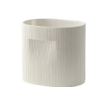 Ridge Planter, 24 cm korkea, Muutolta on tilava ja tyylikäs istutusruukku, jossa on veistoksellinen muoto. Se on valmistettu kivitavarasta, ja sen mattapintainen ulkopuoli sekä lasitettu sisäpinta luovat elegantin ja ajattoman ilmeen. Sivujen syvennykset tekevät ruukusta helpon tarttua ja samalla korostavat sen ainutlaatuista muotoilua.