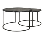 Sohvapöytä 2-set. Kansi mustaa alumiinia. Runko mustaksi maalattua rautaa.