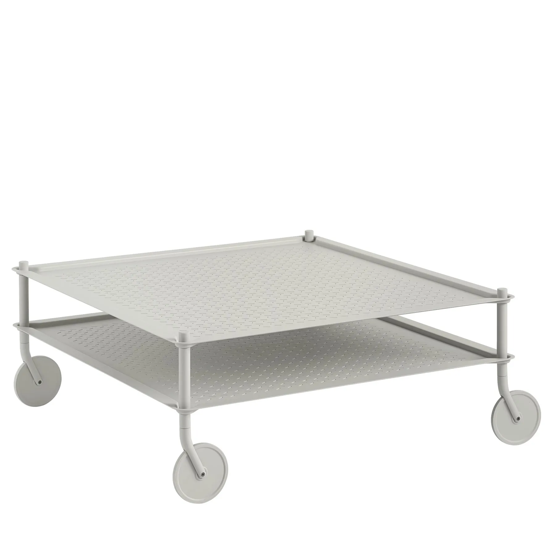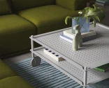 Flow-sohvapöytä on tyylikäs ja käytännöllinen huonekalu, jossa on teollista eleganssia. Kaksi rei’itettyä, jauhemaalattua teräshyllytasoa luovat kevyen ja ilmavan ilmeen, ja helposti rullaavien pyörien ansiosta pöytää on helppo siirtää eri tiloihin. Sopii yhtä hyvin olohuoneeseen kuin terassille.
