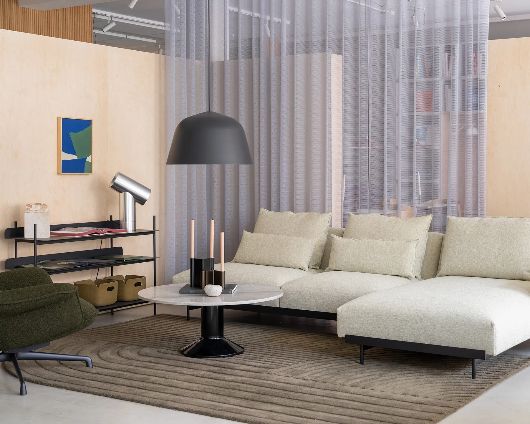 Midst-sohvapöytä Ø90 on Muuton pyöreä sohvapöytä, jossa on selkeä keskipiste ja tasapainoinen ilme. Kompakti koko tekee pöydästä helpon sijoittaa, ja muoto tuo tilaan rauhallisen keskuksen. Sohvapöytä sopii yhtä hyvin pienempiin olohuoneisiin kuin avoimempiin tiloihin.