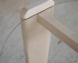 Pöydässä on 5 mm karkaistusta lasista valmistettu pöytälevy, joka yhdistyy tukevaan massiivitammiseen jalustaan. Lakatun pinnan ansiosta pöytä on kestävä ja helppohoitoinen.