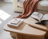 Billings-sohvapöytä Rowicolta yhdistää pehmeät muodot ja huolellisen käsityön.