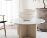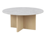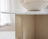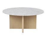 Ylellinen japanilaistyylinen Brooksville-sohvapöytä, jossa skandinaavinen muotoilu kohtaa japanilaisen minimalismin. Valkoisesta Carrara-marmorista valmistettu pyöreä pöytälevy yhdessä FSC-sertifioidun puisen jalan kanssa tekevät kestävän sohvapöydän ja rauhallisen tunnelman huoneeseen.