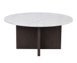 Brooksville-sarjan sohvapöytään voit valita ruskean tai valkotammen sävyisen jalan. Pöytälevy on saatavilla pyöreänä tai neliön muotoisena, ruskealla tai valkoisella marmorilla.
