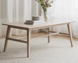 Filippa-sohvapöytä Rowicolta edustaa pohjoismaista muotoilua luonnollisella ilmeellä. Pöytä on valmistettu massiivisesta, sormijatketusta tammesta ja viimeistelty valkopigmentoidulla öljykäsittelyllä, joka suojaa pintaa ja korostaa puun kaunista syykuviota.