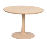 Pöydässä on ajaton muotoilu pyöreällä kannella ja pylväsjalustalla. Pöytä on saatavilla valkoisella pigmentoidulla tammella ja lakatulla tammella, sekä kokoluokissa Ø60 cm ja Ø90 cm.Valkoiseksi värjätty tammi antaa pöydälle kevyen ja modernin tunnelman, kun taas lakattu tammi luo lämpimän ja kodikkaan tunnelman. Pöytä on valmistettu laadukkaista materiaaleista, jotka takaavat pitkän käyttöiän.