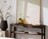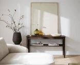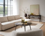 Markham-sivupöytä Rowicolta on tyylikäs ja toiminnallinen lisä kotiisi. Sen siro muotoilu, jossa on elegantit kaarevat yksityiskohdat pöytälevyn alla ja pyöristetyt jalat, luovat pehmeän ja hienostuneen vaikutelman. Pöydässä on käytännöllinen laatikko, jossa on huomaamaton upotettu vedin, mikä korostaa sen puhdasta ja minimalistista ilmettä.