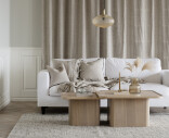 Sullivan on moderni ja tyylikäs sohvapöytä skandinaavisella muotoilulla. Sohvapöytä löytyy kahdessa eri koossa, käytä yksinään tai yhdessä sarjapöytänä. Pöydän kansi on tammiviilua massiivitammisella reunalla, ja kannen pyöristetyt kulmat antavat pöydälle pehmeän yleisilmeen. Sohvapöydän uritettu jalka on massiivitammea.