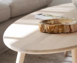 Tompkins-sohvapöytä Rowicolta on tyylikäs ja kestävä valinta. Valmistettu massiivisesta öljytystä tammesta, pöytä luo pehmeästi pyöristetyillä yksityiskohdillaan luonnollisen ja kutsuvan tunnelman. Ellipsinmuotoinen sohvapöytä on helppo yhdistää muihin Tompkins-malliston pöytiin, johon kuuluu myös pyöreitä ja neliönmuotoisia malleja. Esimerkiksi pyöreä sohvapöytä toimii loistavasti sivupöytänä, täydentäen sisustusta kokonaisuudeksi.
