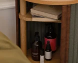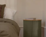 Audacious-sivupöytä on pieni, pyöreä pöytä, jossa on tekstiiliverhoillut liukuovet ja fiksu säilytystila. Sisäänrakennetun USB-hubin ansiosta se on käytännöllinen lisä sohvan, sängyn tai eteisen yhteyteen – paikka, jossa on tilaa sekä pienille tavaroille että tekniikalle.