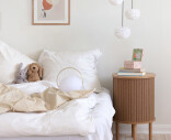 Audacious sivupöytä tarjoaa tason, säilytystilaa sekä käytännöllisen latauspisteen puhelimellesi.