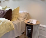 Audacious sivupöytä tarjoaa tason, säilytystilaa sekä käytännöllisen latauspisteen puhelimellesi.