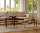 “With rounded corners and a shelf beneath, the table draws references from Danish mid-century modern and emphasizes the importance of moments spent around the centrepiece of relaxation together with family and friends.”